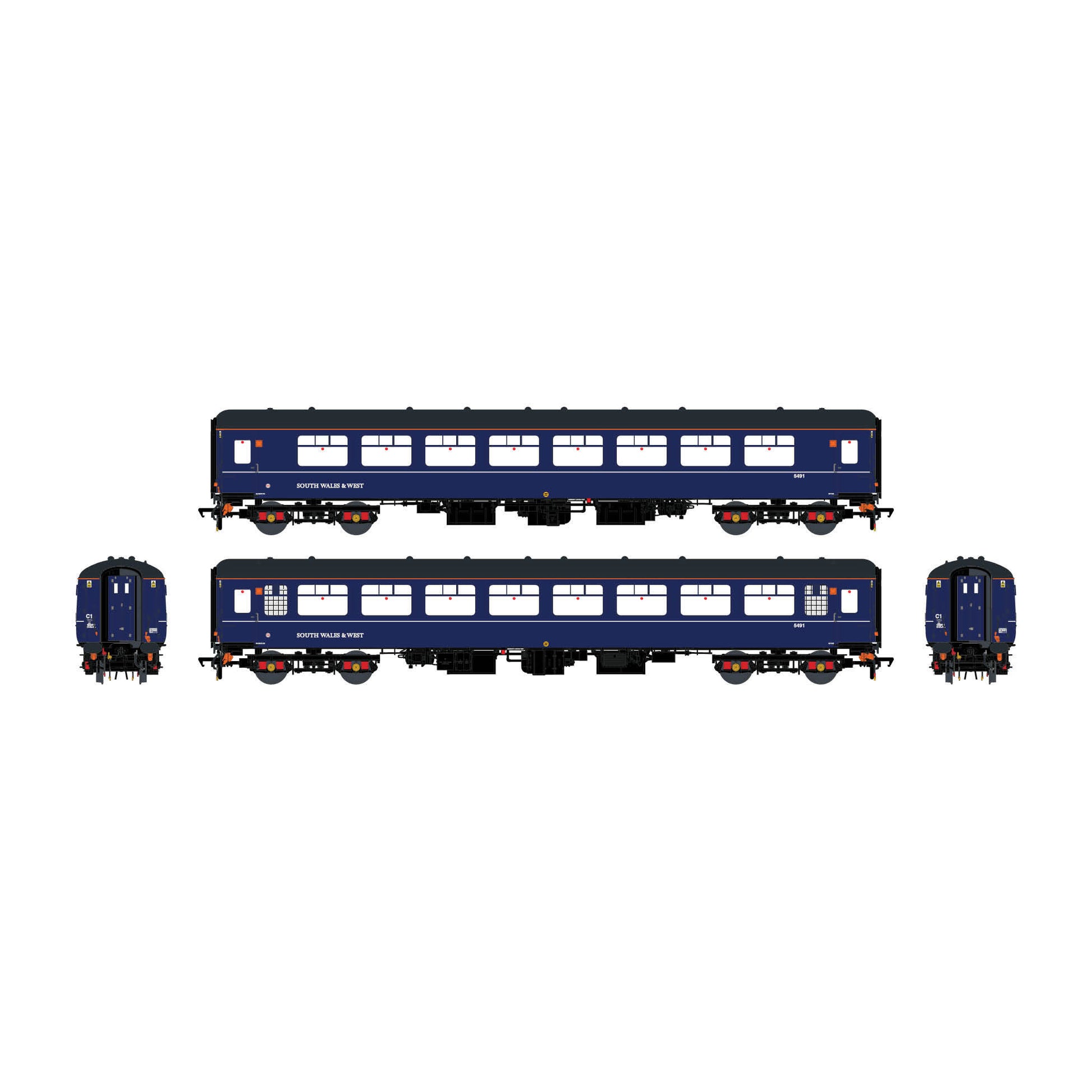 - Accurate interiors with characteristic 'winged' headrests, separate metal interior handrails on the brake and corridor vehicles and fully-detailed guard's compartment